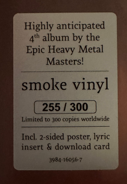 Smoke vinyl, limited to 300 numbered copies + 2-sided poster, lyric insert & download card.